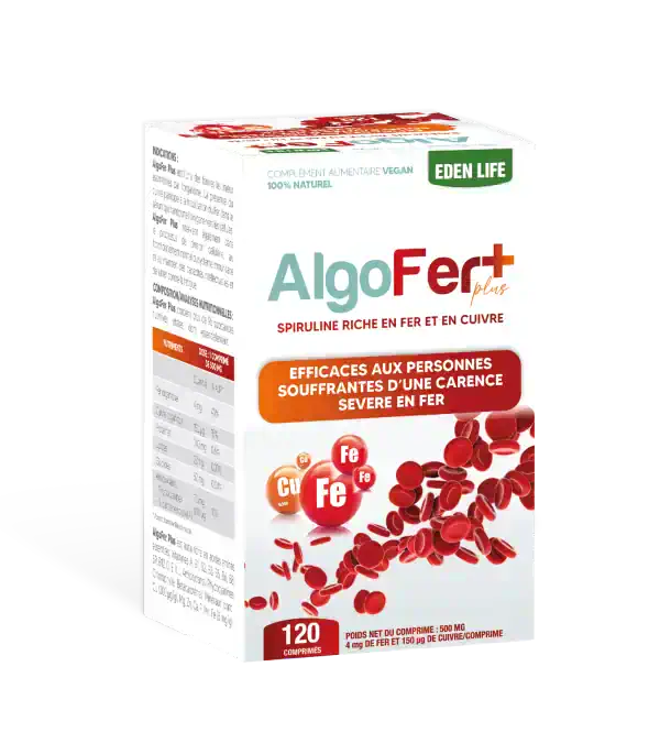 AlgoFer Plus intervient également dans le processus de division cellulaire, au fonctionnement normal du système immunitaire et au maintien des capacités intellectuelles et de lutter contre la fatigue.