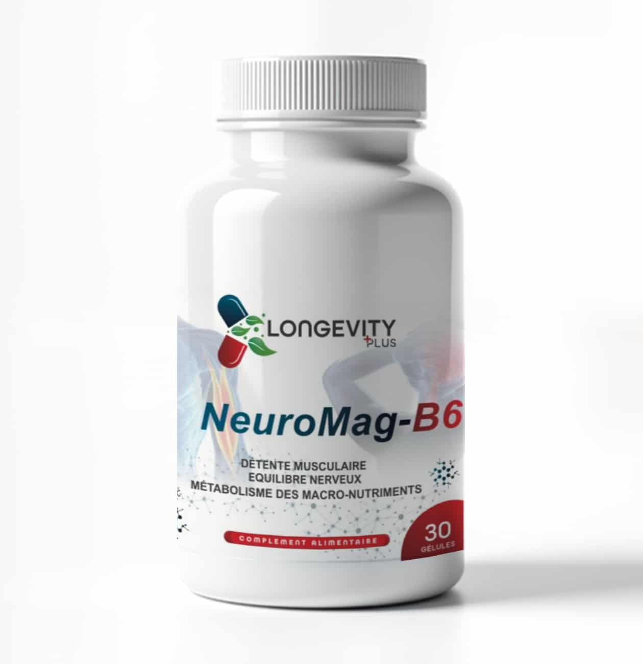Neuromag B6 de Longevity Plus est un supplément magnesium conçu pour soutenir la fonction cérébrale et améliorer la concentration. Grâce à sa formule unique de magnésium et de vitamine B6, il aide à réduire la fatigue mentale et à favoriser le bien-être cognitif.